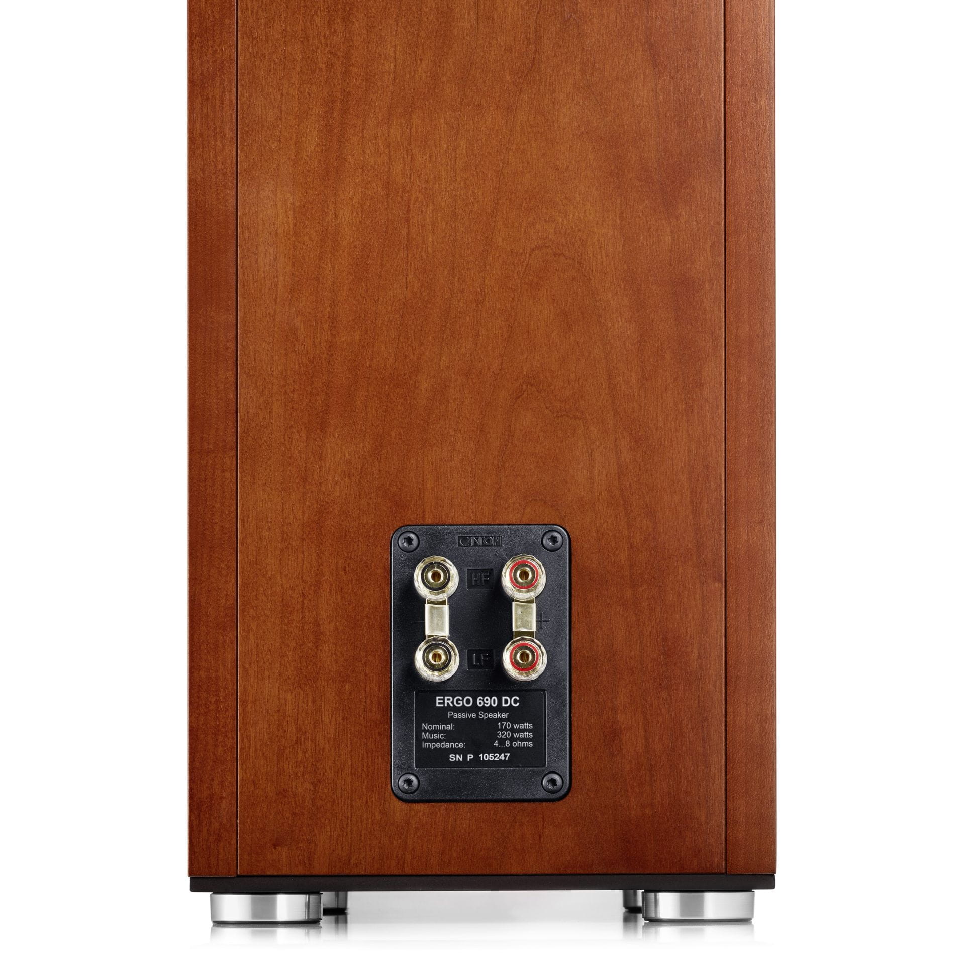 Oprócz klasycznej elegancji, model Ergo 690 DC wyróżnia się wysokim stopniem zaawansowania technicznego: dopracowane i sprawdzone przetworniki wysokotonowe z aluminiowo-manganową kopułką oraz wysokiej jakości aluminiowe przetworniki średnio- i niskotonowe zapewniają precyzyjny obraz dźwiękowy o imponującej dynamice. Głośniki charakteryzują się wyjątkowo solidną konstrukcją – z licznymi wewnętrznymi wzmocnieniami i wysokiej klasy okablowaniem wewnętrznym. Dodatkowo, strategicznie rozmieszczone elementy tłumiące oraz starannie dobrane komponenty zwrotnicy wpływają na optymalizację brzmienia 24-kilogramowych kolumn podłogowych.