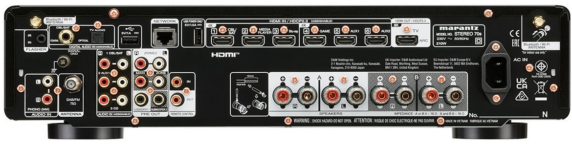 Wejścia HDMI i ARC ułatwiają podłączenie do inteligentnych telewizorów, konsol do gier i urządzeń do przesyłania strumieniowego. Menu ustawień jest łatwe w nawigacji za pośrednictwem wyświetlacza ekranowego, a rozbudowane zarządzanie subwooferem jest częściej spotykane w wielokanałowych amplitunerach dźwięku przestrzennego. STEREO 70s oferuje te funkcje w urządzeniu, które obsługuje dwa głośniki i jest łatwe w konfiguracji.
