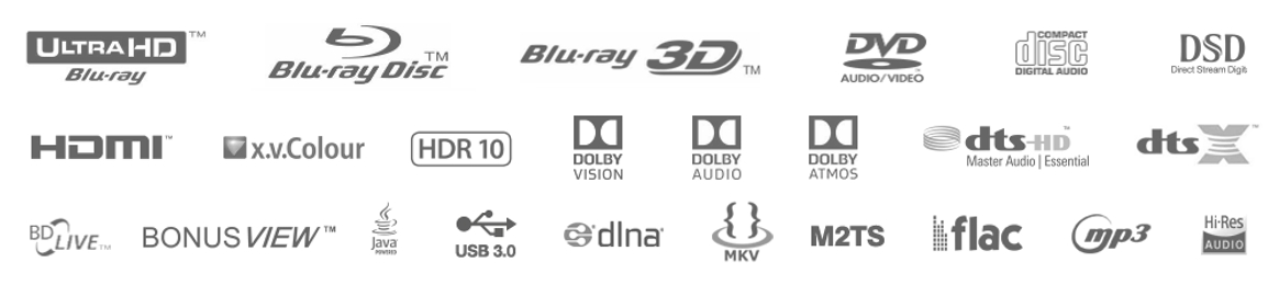 Jako uniwersalny odtwarzacz płyt, UBR-X100 może odtwarzać różne dyski optyczne, w tym najnowszy format Ultra HD Blu-ray, który ma czterokrotnie wyższą rozdzielczość niż 1080p Full HD, a także Blu-ray, Blu-ray 3D, DVD, CD oraz pliki muzyczne, wideo i audio, takie jak FLAC, AIFF, DFF, DSF, JPG, TIFF, MKV i M2TS. UBR-X100 może również odtwarzać zawartość audio i wideo z dysku zewnętrznego przez USB lub DLNA.