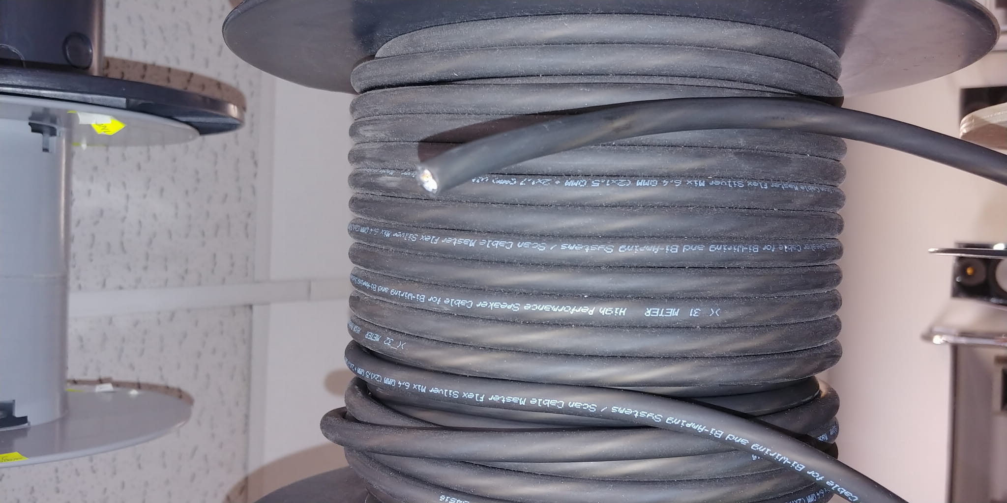 SCAN Cable MasterFlex to neutralne, zrównoważone, krystalicznie i detalicznie brzmiące wysokiej klasy przewody głośnikowe wykonane z miedzi kategorii ultra OFCu. Wyrafinowana konstrukcja wiązek, niskostratna, podwójna izolacja żył z kompozytu na bazie PVC, gwarantuje polepszenie parametrów indukcyjno-pojemnościowych odciążając energetycznie wzmacniacz, co jest słyszalne już na odcinkach pow. 1,5 m. Pomiary laboratoryjne potwierdzają wzrost dynamiki, oraz homogeniczne rozłożenie sygnału w całym zakresie pasma akustycznego. Dodatkowa warstwa izolacyjna zabezpiecza żyły przewodzące przed uszkodzeniem, stabilizuje przewód utrzymując jego osiowy układ, a jej skład chemiczny zapewnia niepowtarzalne właściwości dielektryczno-mechaniczne. W skomplikowanym procesie produkcyjnym zastosowano technologię splotu żył przewodzących w przeciwnych kierunkach pod kątem 45°redukującą wzajemny ich wpływ (siła Lorentz’a). Przewody serii SCAN Cable MasterFlex posiadają oznaczenie polaryzacji oraz dostępne są w wersji miedzianej ultra OFCu i ultraOFCu/Silver o przekrojach efektywnych 6,4 mm² ( 2 x 1,5 + 2 x 1,7 mm² ), 2 x 1,5 mm² oraz 2 x 2,5 mm². Wysoka jakość materiałów, konstrukcja żył przewodzących i zastosowanie bardzo elastycznej, żelowanej izolacji, predysponują te kable nie tylko do klasycznego okablowania, ale również do instalacji w konfiguracjach systemów kina domowego, multi room oraz car audio. Atrakcyjny, techniczny design, produkt „Made in Germany“, to kolejne istotne aspekty projektu i ważne atuty w rękach sprzedawcy i projektanta.