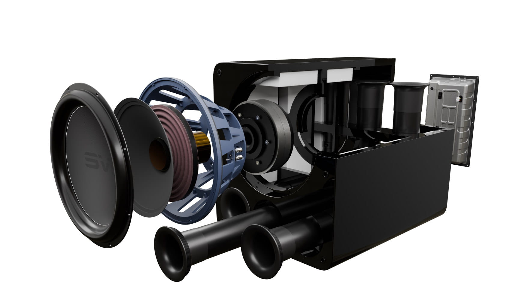 15-calowy głośnik niskotonowy o dużym wychyleniu generuję niesamowite 2000W mocy ciągłej i 5000 W mocy szczytowej. Zachowując zarazem niezrównaną precyzję odwzorowania i pełną kontrolę nad brzmieniem. Wzmacniacz pracujący w klasie D wsparty został dyskretnymi tranzystorami MOSFET oraz zaawansowanym procesorem DSP. Za pośrednictwem dedykowanej aplikacji mamy pełną kontrolę nad pracą subwoofera. Umożliwia ona również dokładne strojenie i zapisanie ustawień do własnych preferencji. Opracowana specjalnie dla tego modelu aplikacja umożliwia zdalne sterowanie wszystkimi funkcjami subwoofera i procesora DSP. Kontroluje ona głośność, korektor graficzny, filtr dolnoprzepustowy, fazę, polaryzację, korekcję akustyki pokoju, ustawienia własne użytkownika i ustawienia systemowe.