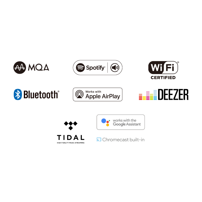 Model SL-G700 obsługuje funkcje Bluetooth, Wi-Fi oraz Apple AirPlay2 oferujące dużą niezawodność łączności bezprzewodowej. Jest również zgodny z usługami przesyłania strumieniowego, takimi jak Spotify, TIDAL, oraz radio internetowe, oraz funkcjami takimi jak Chromecast Built-in oraz Asystent Google.*