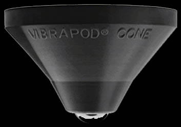 Przedstawiamy nowy rodzaj przystępnego cenowo systemu pochłaniania wibracji: stożek Vibrapod. Może być wykorzystywany w połączeniu z izolatorami Vibrapod lub samodzielnie. Stożki posiadają siłę udźwigu równą 4.5 kg na sztukę i mogą być używane punktem podparcia zwróconym do góry bądź do dołu. Stożki Vibrapod poprawiają osiągi systemu audio o wideo, chroniąc go przed wibracjami pochodzącymi od pomieszczenia i stolika. Użyte samodzielnie lub w zestawieniu z bliźniaczymi izolatorami są w stanie podnieść jakość prezentacji waszego systemu.