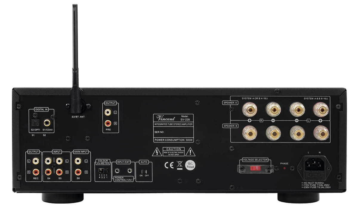 Vincent SV-228 to następca i rozwinięcie hybrydowej integry SV-227 MK. Całkowicie nowym elementem w stosunku do poprzednika są dwa wskaźniki wychyłowe na przednim panelu. Wskaźniki są podświetlane, a kolor tego podświetlenia możemy wybrać za pomocą przełącznika z tyłu urządzenia. Nominalna moc wyjściowa wynosi przy 100 W przy 8 Ohmach 100 W, a 180 W przy 4 Ohmach. Wzmacniacz oprócz wejść analogowych wyposażony jest również w wejścia cyfrowe — optyczne i koaksjalne, a także w wejście bezpośrednio do końcówki mocy (bypass). W przedwzmacniaczu pracują dwie lampy ECC82 i jedna 6N4.
