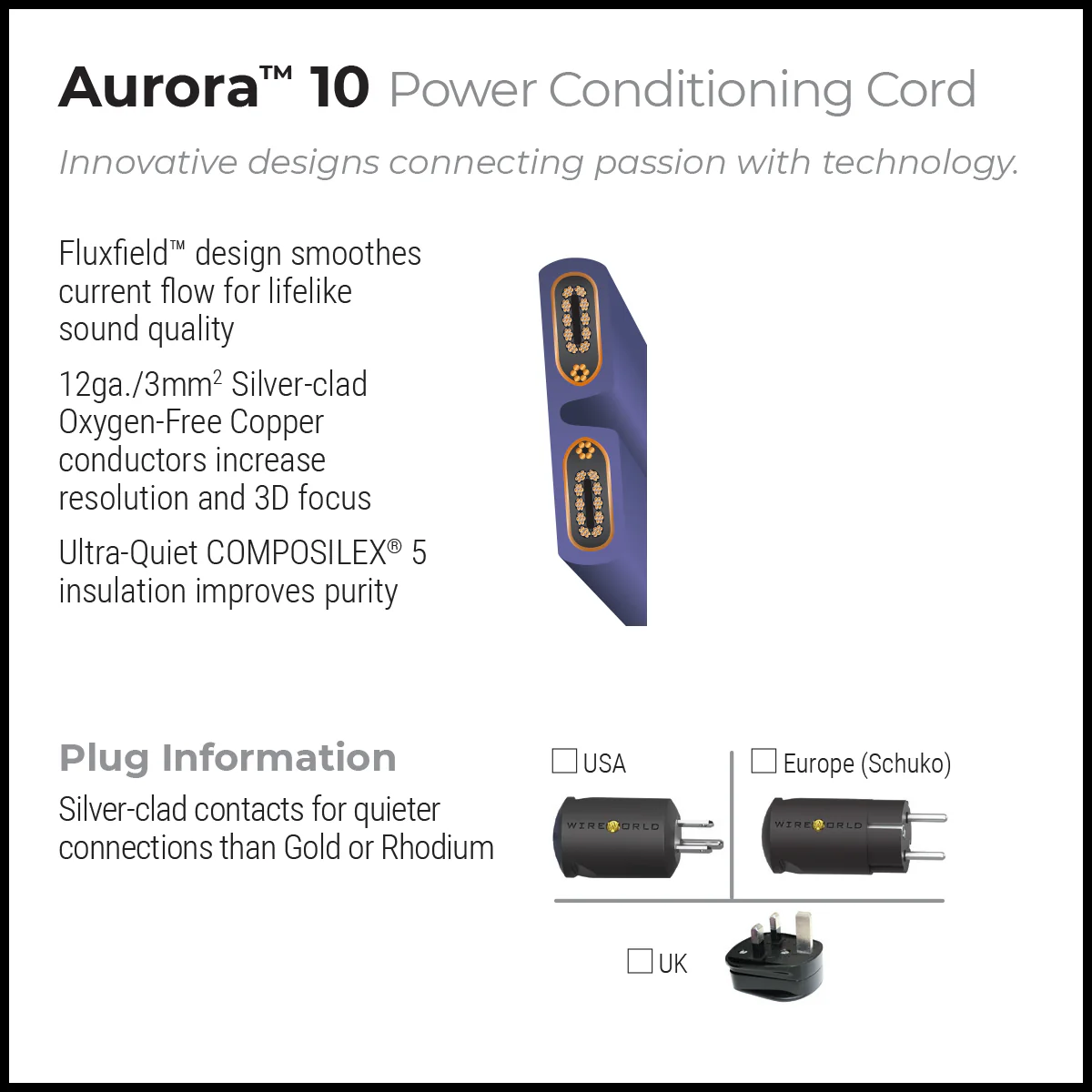 WIREWORLD AURORA 10 - 1,5m Kabel zasilajacy (AUP) - wtyk EU
